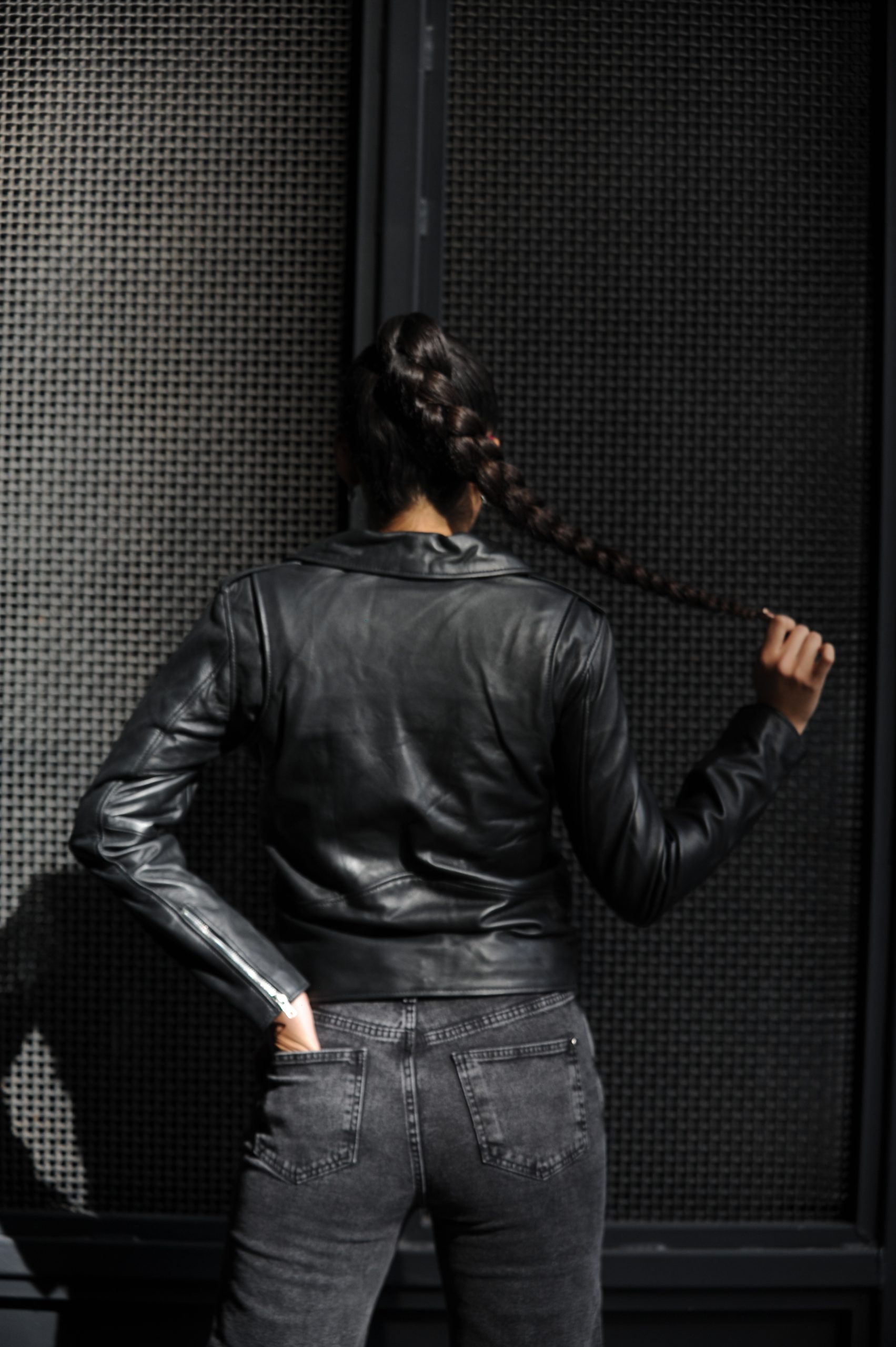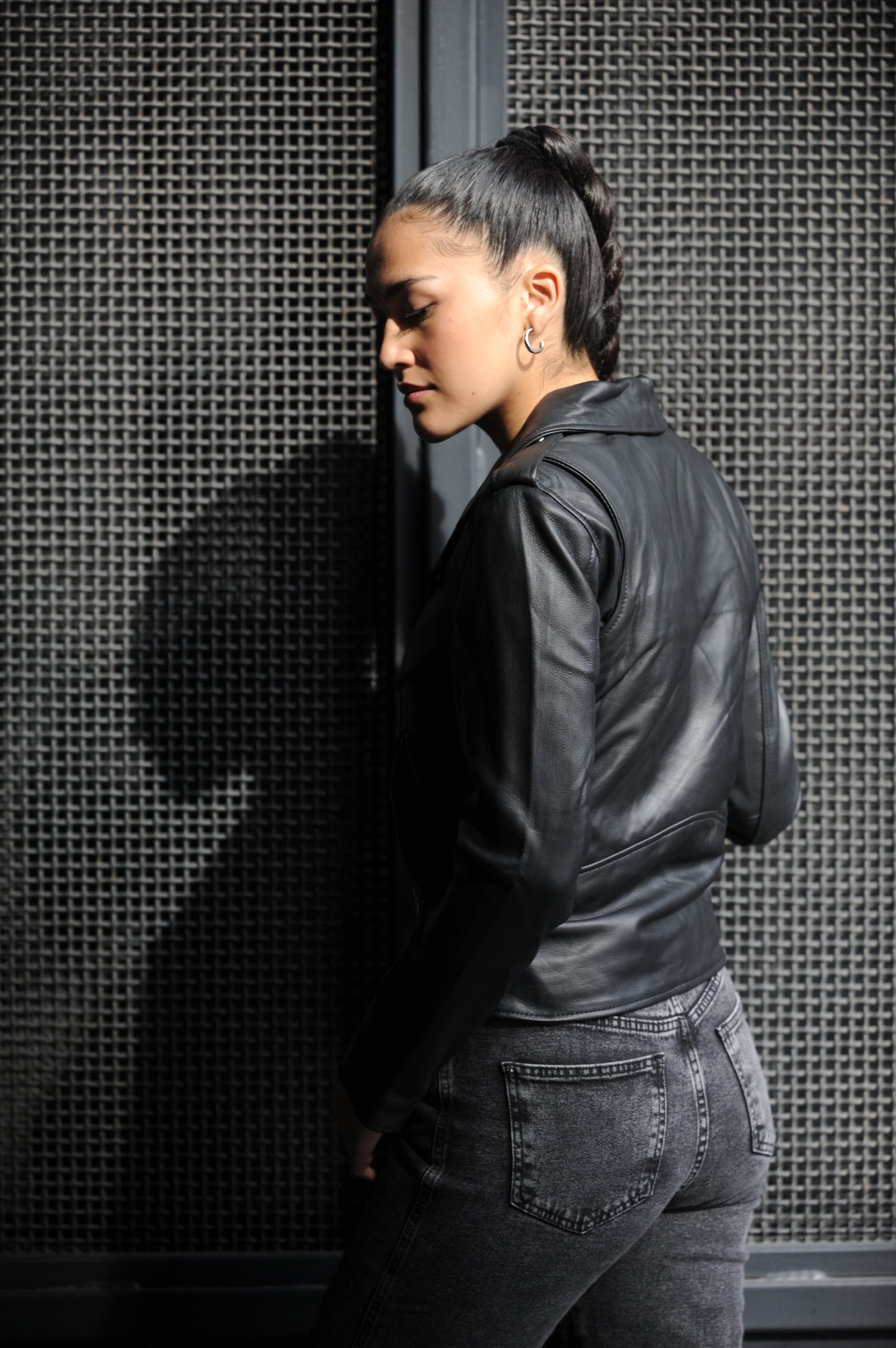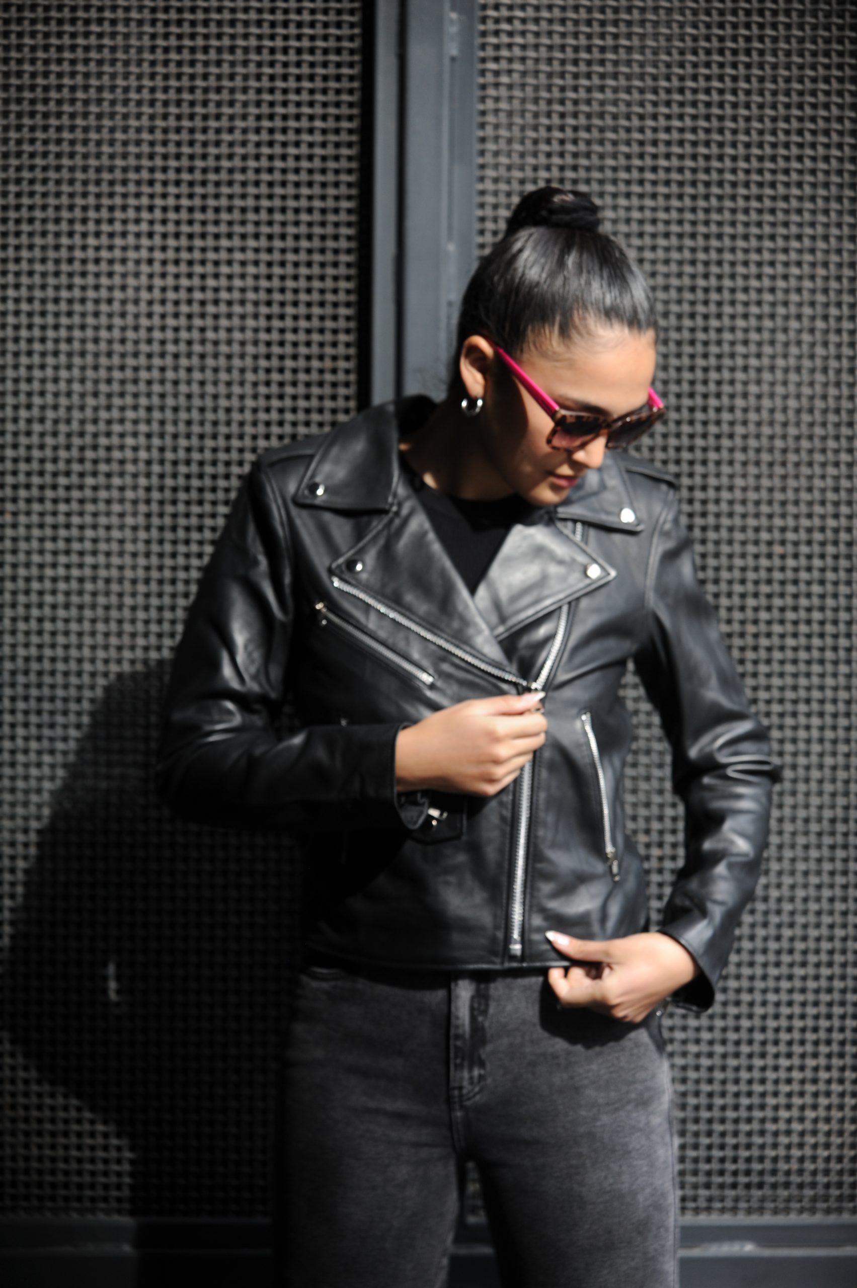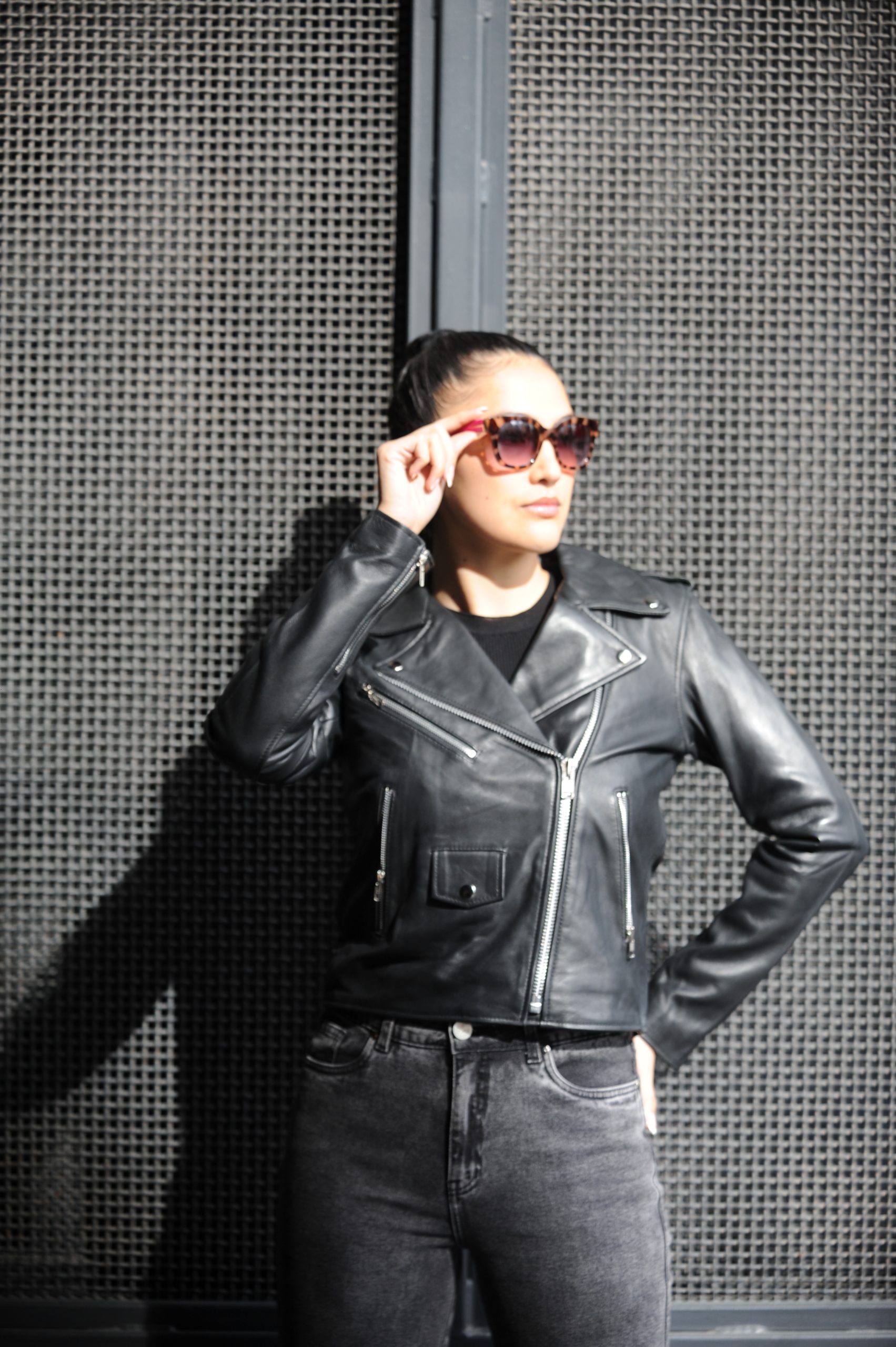 Jacket MARIBEL está hecha en 100%cuero de cabra suave y liviano, con cierres y finos detalles metálicos con un perfecto calce, biker clásica para elevar tu outfit, úsala de dia o noche, siempre será tu mejor partner.